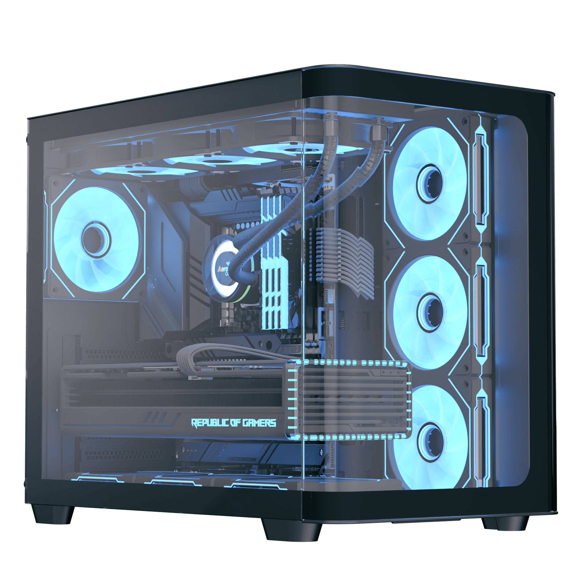 Finished with dual curved glass front and side panels, the P500A blends elite cooling with showcase aesthetics.