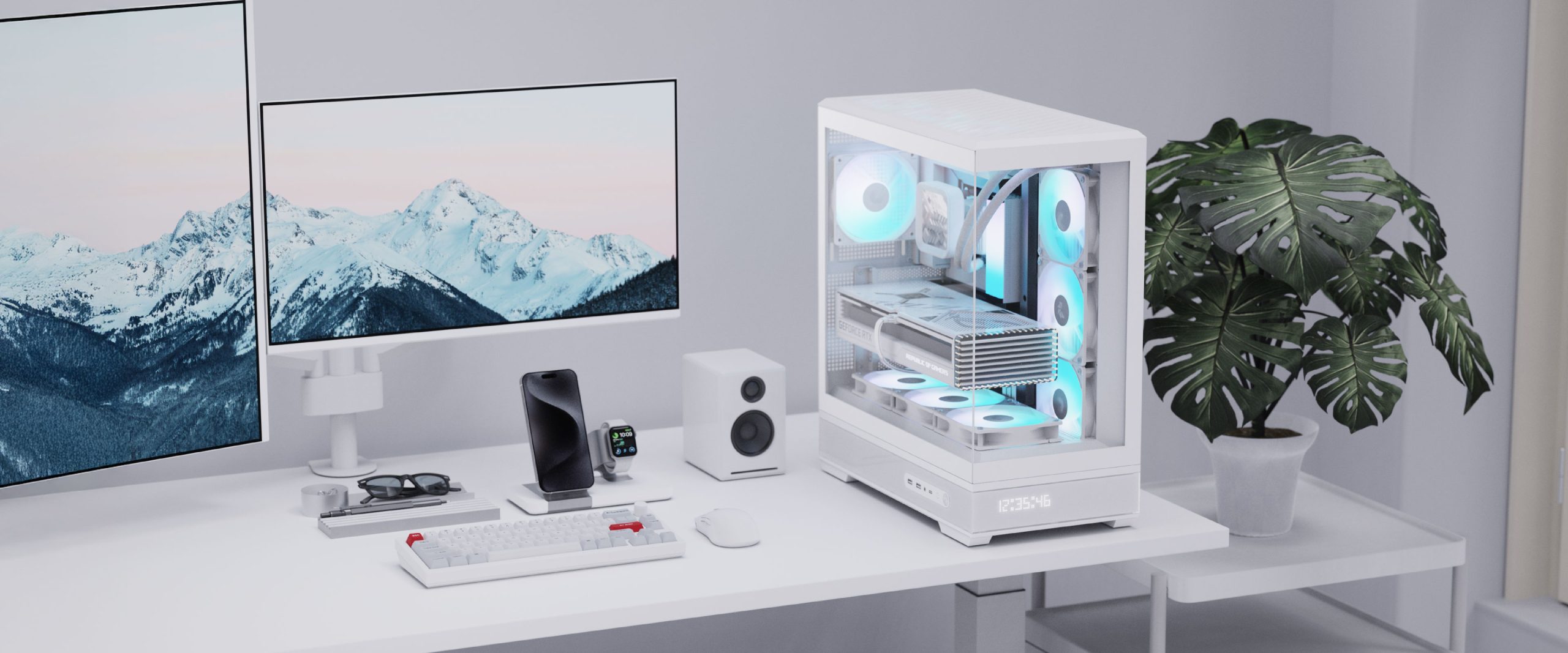 The AeroCool P500B Digi is a premium mid-tower case that combines style and performance with full curved tempered glass panels and a sleek dot-pixel LED display for real-time system stats. It supports both horizontal and vertical GPU mounting and is optimized for clean builds with BTF motherboard compatibility. Thoughtful features like a snap-fit side panel, magnetic dust filters, and an adjustable GPU support bracket make upgrades and maintenance simple and efficient.