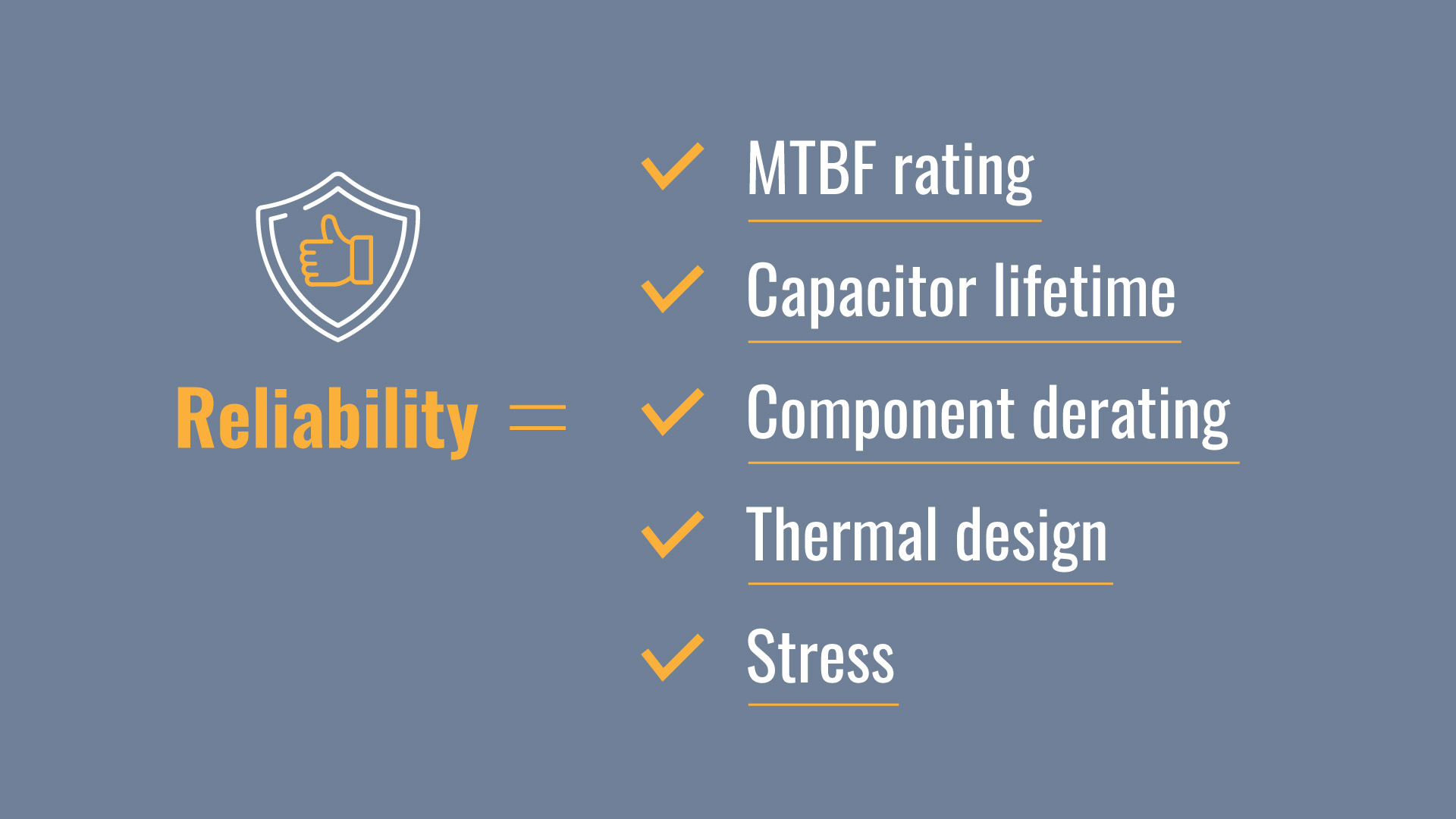 MTBF helps engineers and users estimate a power supply’s reliability over time. A higher MTBF generally suggests better design, higher-quality components, and strong thermal management — all of which contribute to consistent performance and reduced failure risk.
