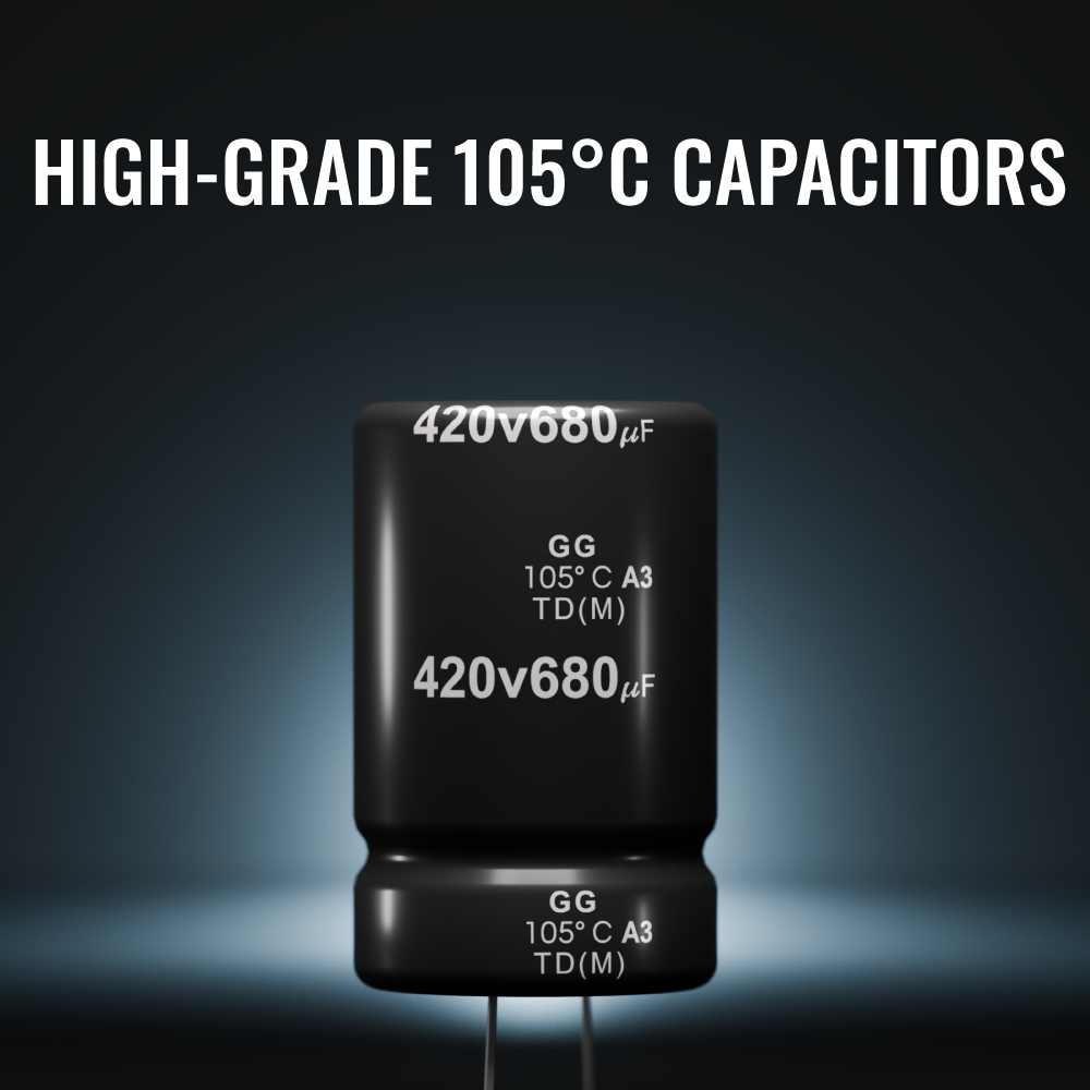 • Built-in high-grade 105°C capacitors provide uncompromised performance, reliability, and durability even under the most demanding conditions.