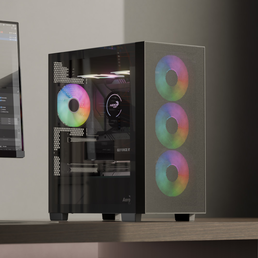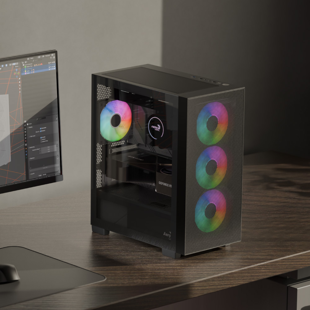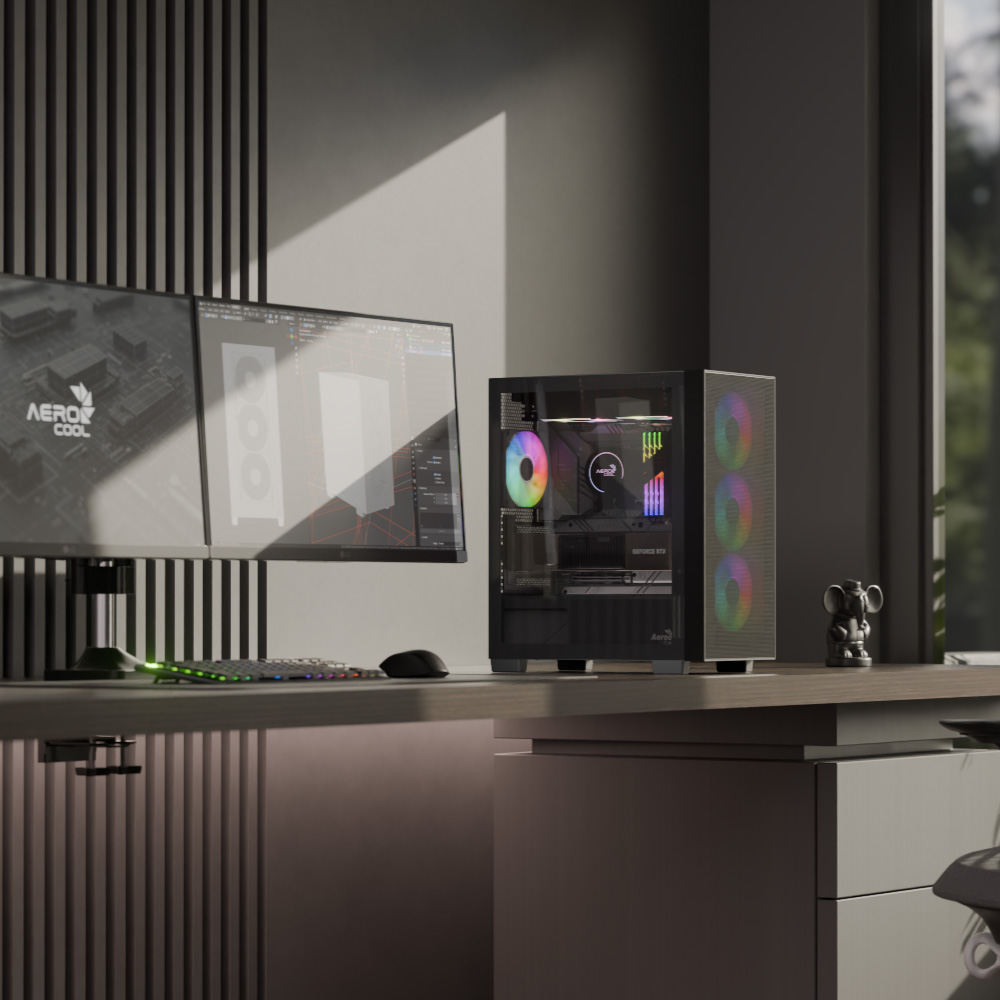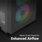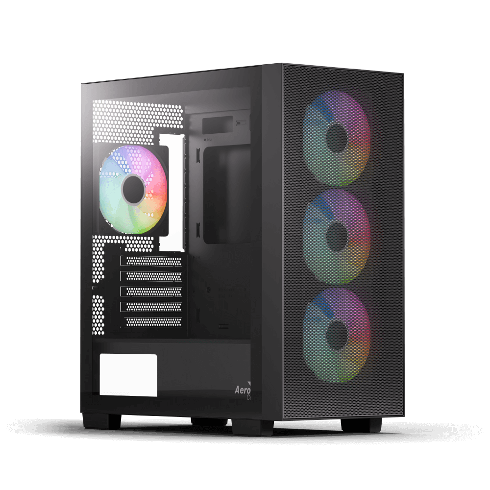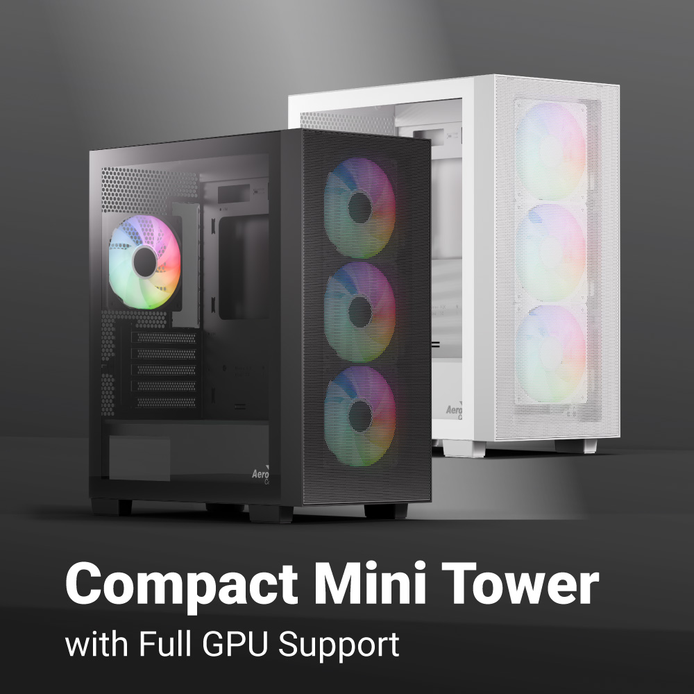 The AeroCool B310A Flow mini tower case combines sleek aesthetics with high-performance cooling, featuring a mesh front panel for optimal airflow and showcasing four pre-installed ARGB 120mm fans. Designed for Micro ATX and Mini-ITX motherboards, it supports up to a 345mm GPU, a 165mm CPU cooler, and multiple radiator configurations for advanced cooling flexibility. With magnetic dust filters for easy maintenance and ample expansion options, this case delivers both style and function for your next build.