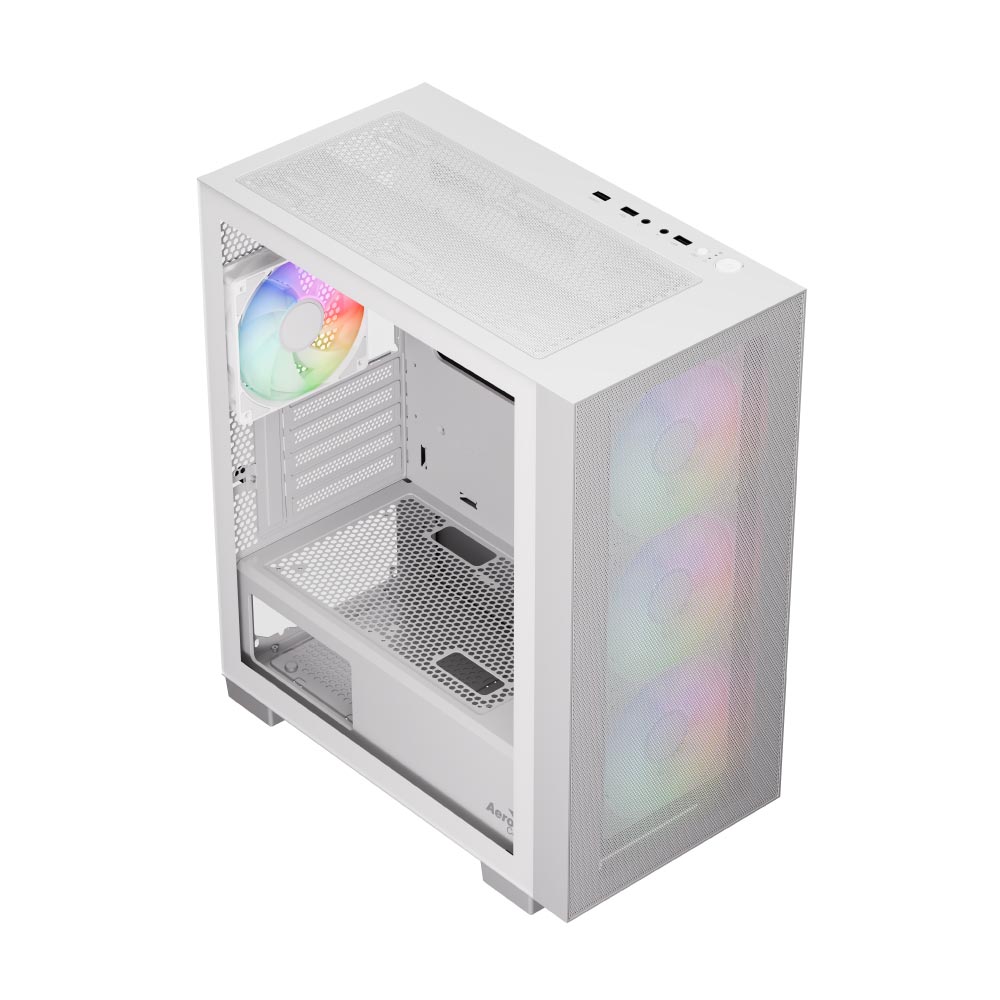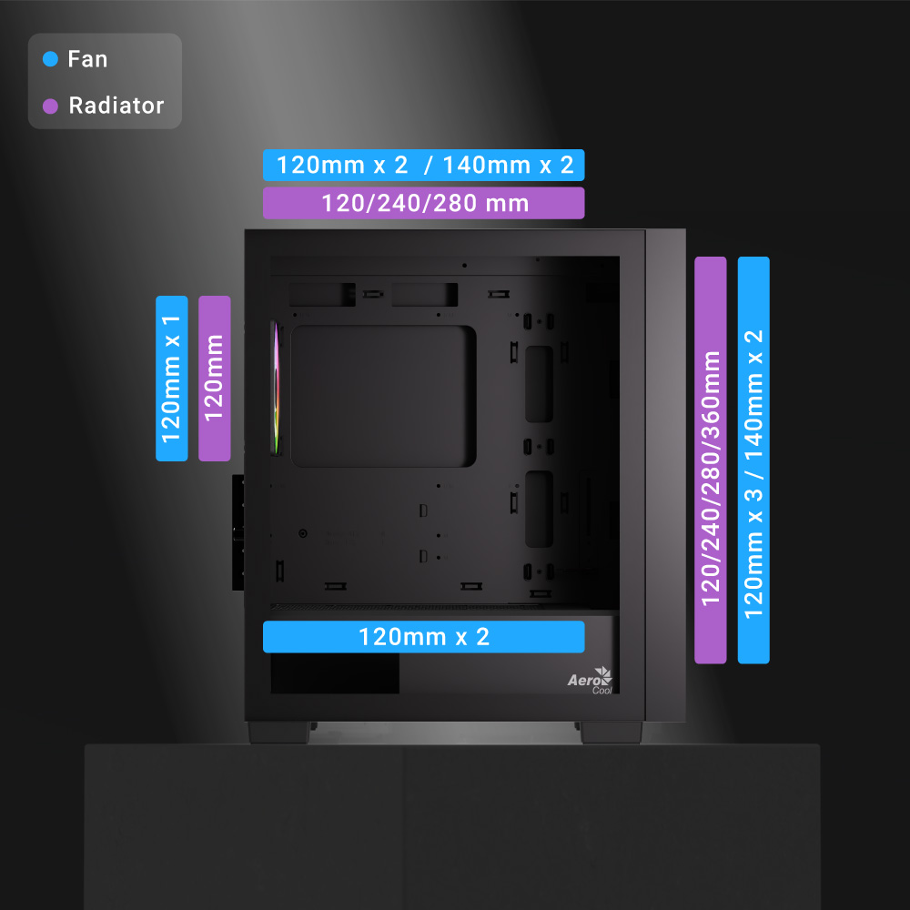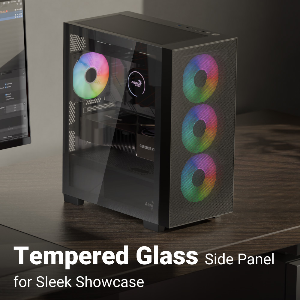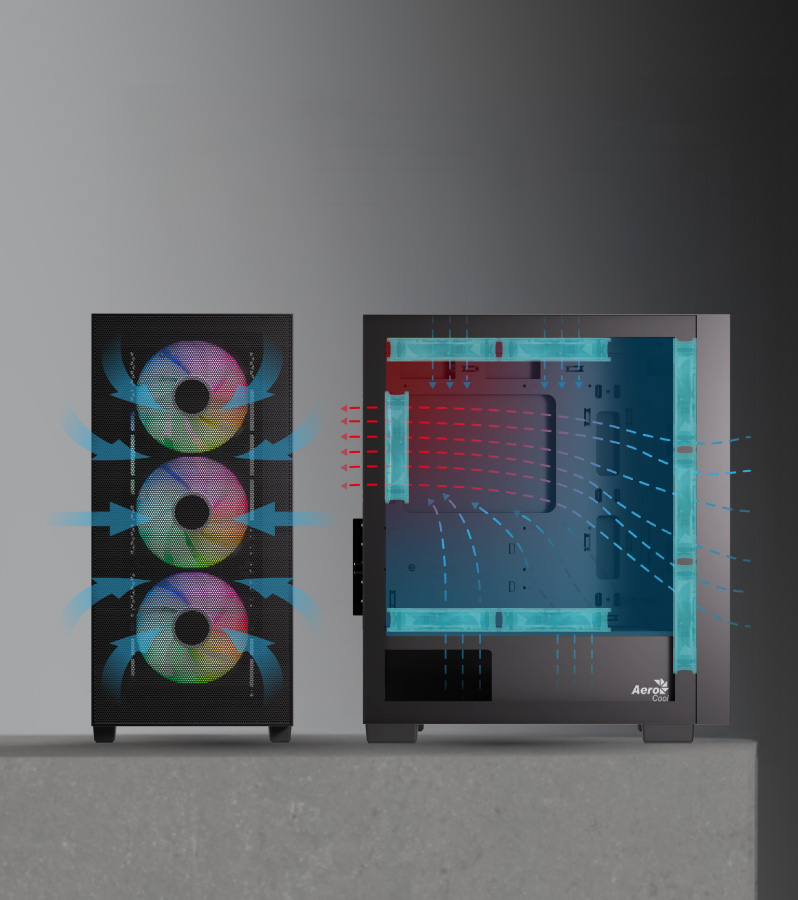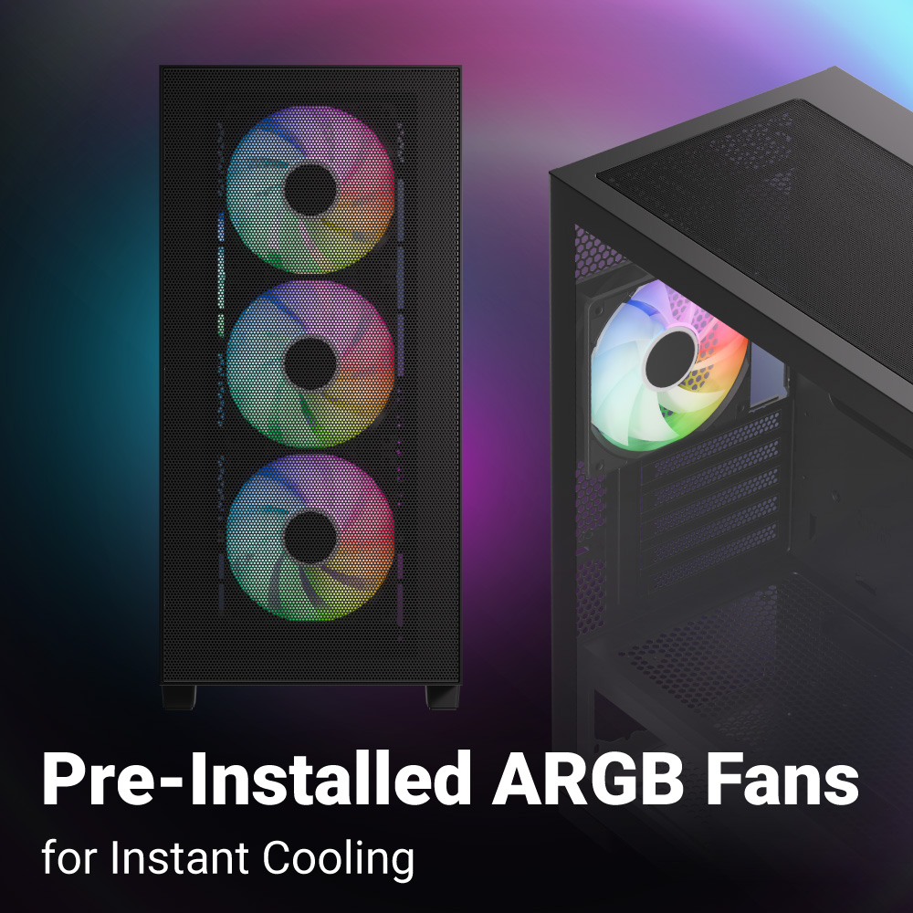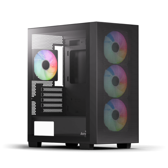 The AeroCool B310A Flow mini tower case combines sleek aesthetics with high-performance cooling, featuring a mesh front panel for optimal airflow and showcasing four pre-installed ARGB 120mm fans. Designed for Micro ATX and Mini-ITX motherboards, it supports up to a 345mm GPU, a 165mm CPU cooler, and multiple radiator configurations for advanced cooling flexibility. With magnetic dust filters for easy maintenance and ample expansion options, this case delivers both style and function for your next build.