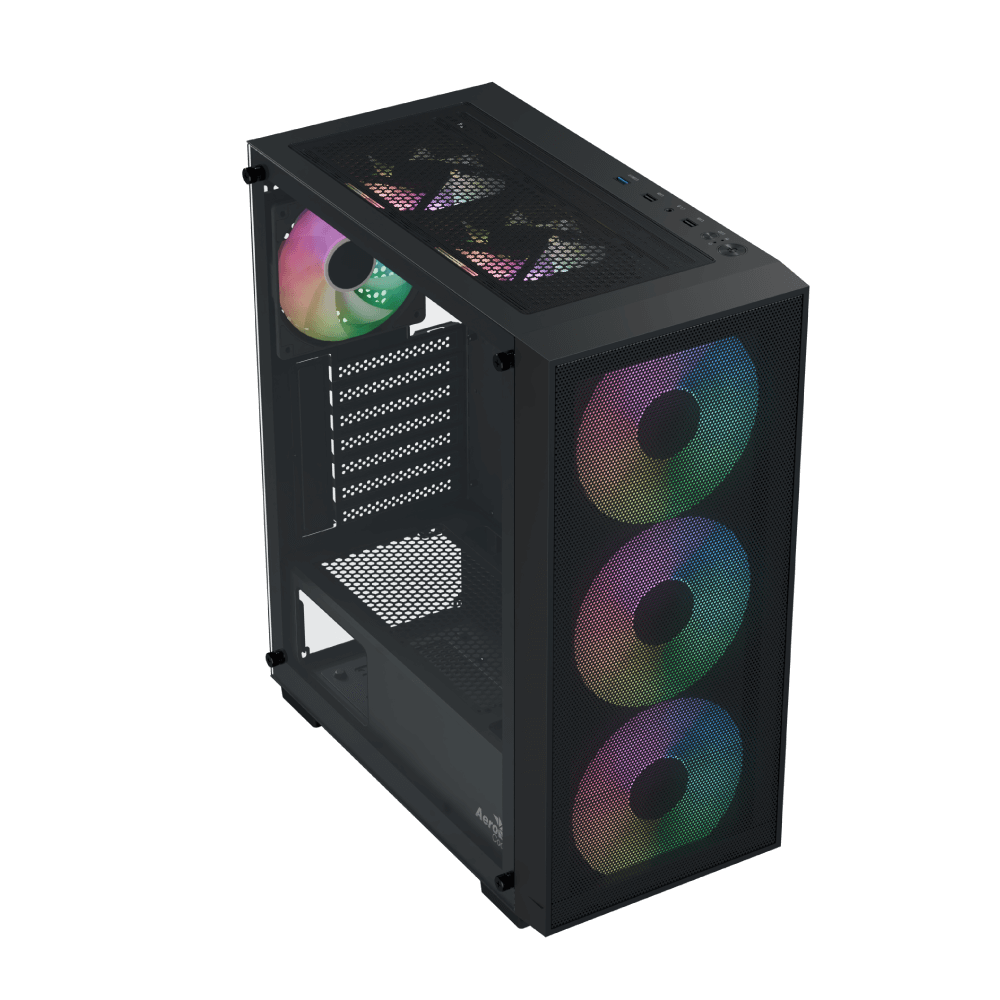 The AeroCool B509A Flow is a mid-tower case that combines powerful performance with sleek, functional design. Its full mesh front panel maximizes airflow while showcasing your build, and with support for GPUs up to 340mm and liquid coolers up to 360mm, it’s ready for high-performance hardware. Equipped with eight fan slots, magnetic dust filters, and a tempered glass side panel, the B509A Flow keeps your system cool, clean, and looking sharp.