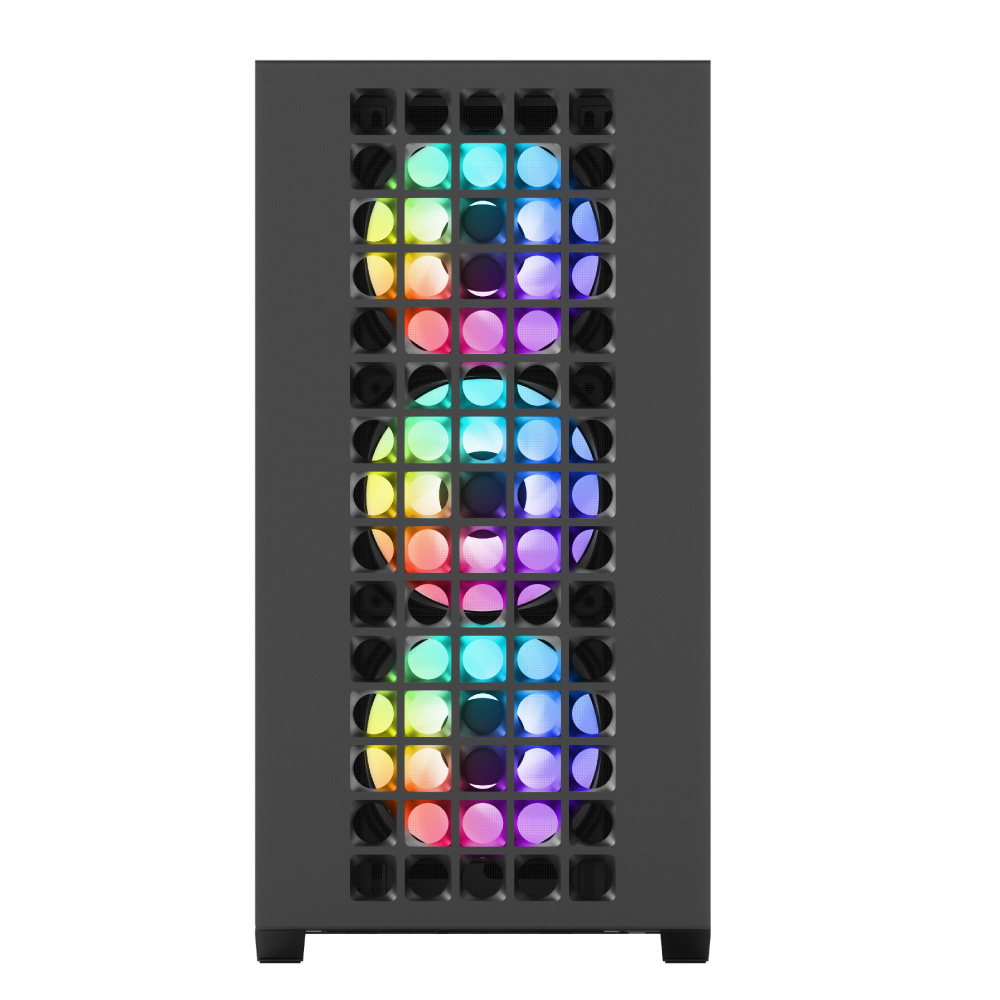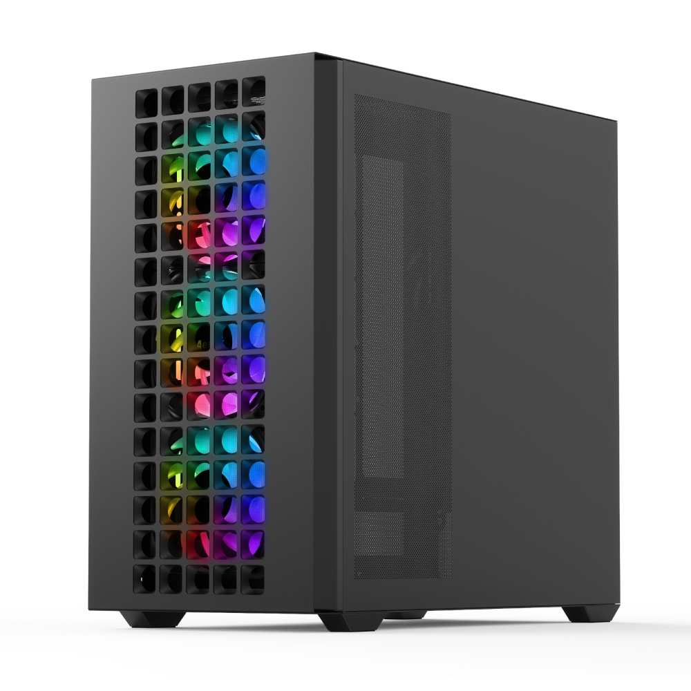 The AeroCool D302A mini tower case combines a stylish mesh front panel design with robust SPCC construction for longevity. It supports ASUS and MSI m-ATX motherboards with backwards-facing connectors, liquid coolers up to 360mm, and GPUs up to 410mm, offering powerful PC build potential in a compact form. With 11 fan slots for optimal cooling, versatile storage options, and convenient I/O ports including USB Type C and USB3.0, this case is designed for high-performance and ease of use.