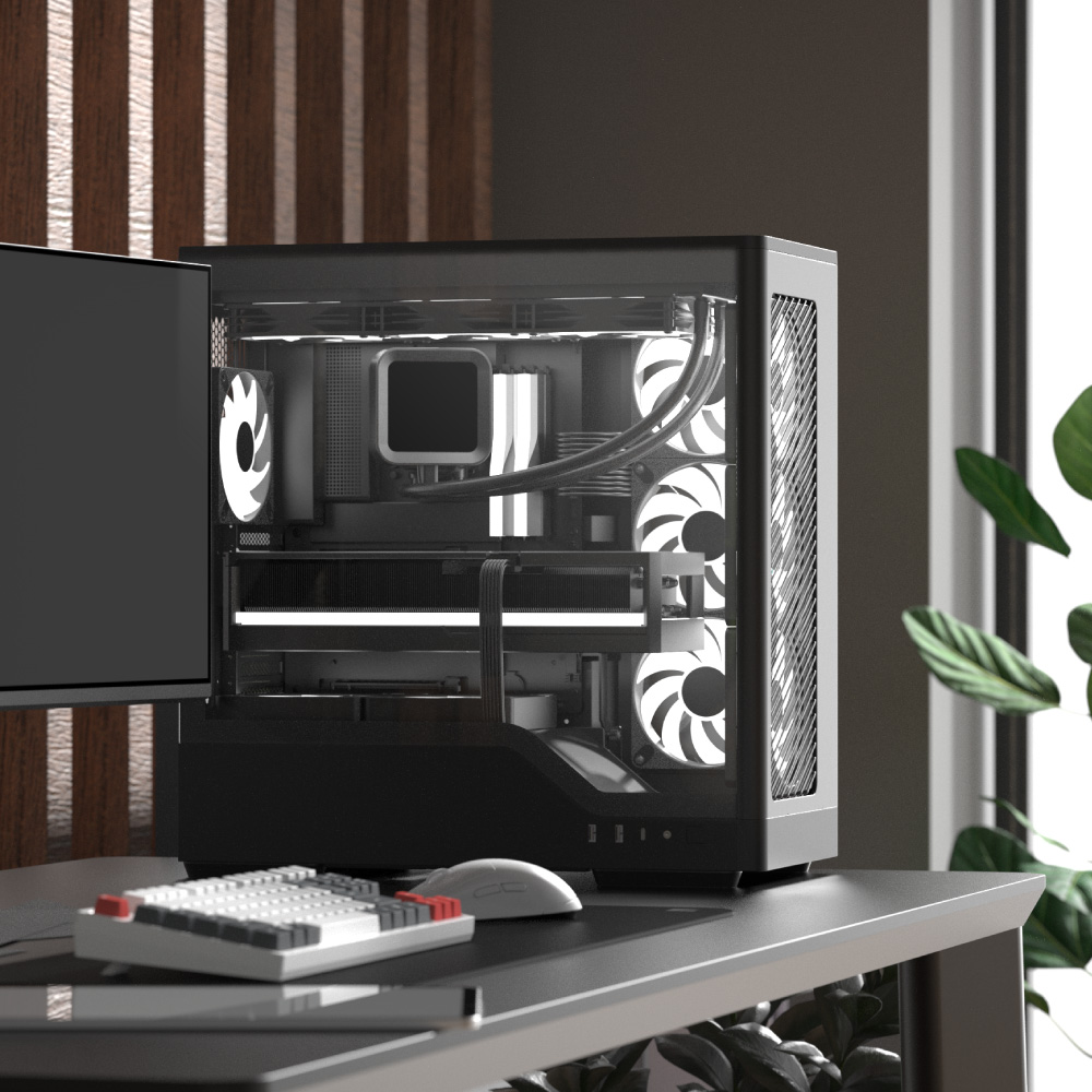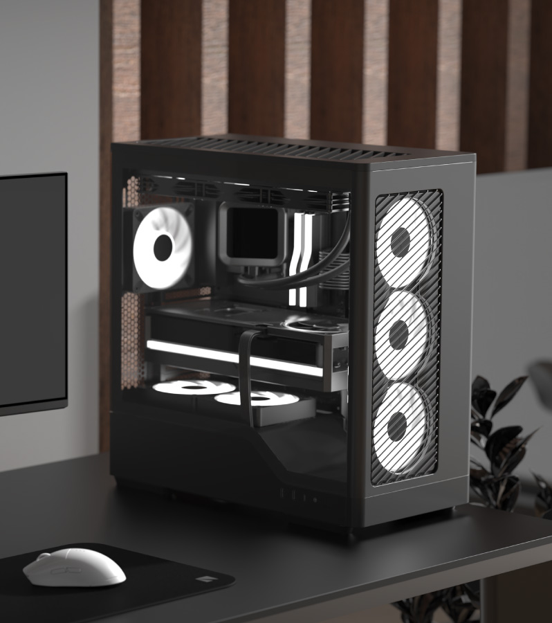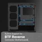 - Supports reverse connector motherboards that keep cables out of sight
