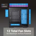 - A total of 12 fan slots for even greater cooling potential