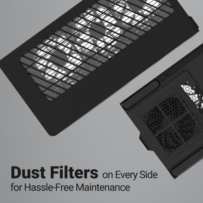 - Removable nylon dust filters on the front, bottom, and top for easy maintenance