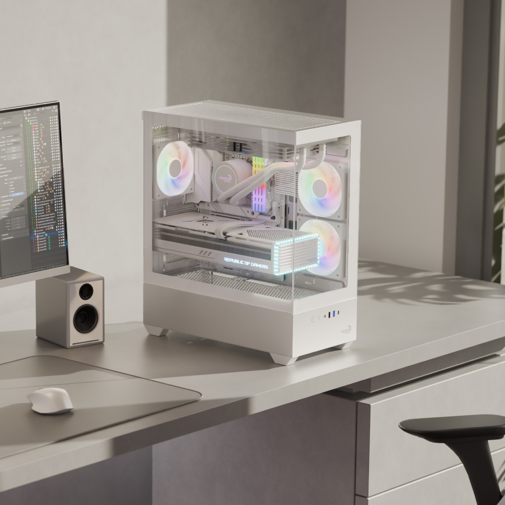 The AeroCool P500D is designed to elevate both aesthetics and performance. Featuring full tempered glass front and side panels, this mid tower case puts your components on full display, making it ideal for builds that demand attention. With support for high-end GPUs up to 418mm and CPU air coolers up to 165mm, it delivers the space and compatibility needed for top-tier gaming and content creation.