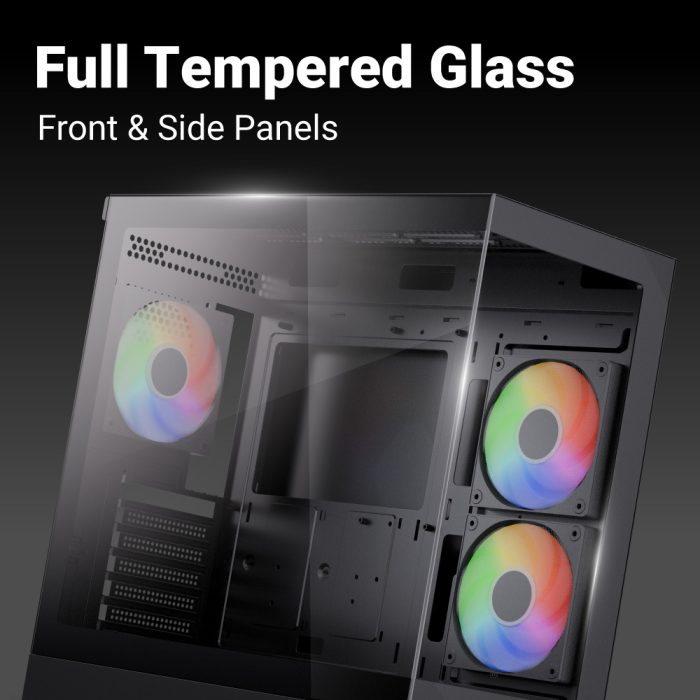 • Full tempered glass front and side panels showcase your build in stunning detail
