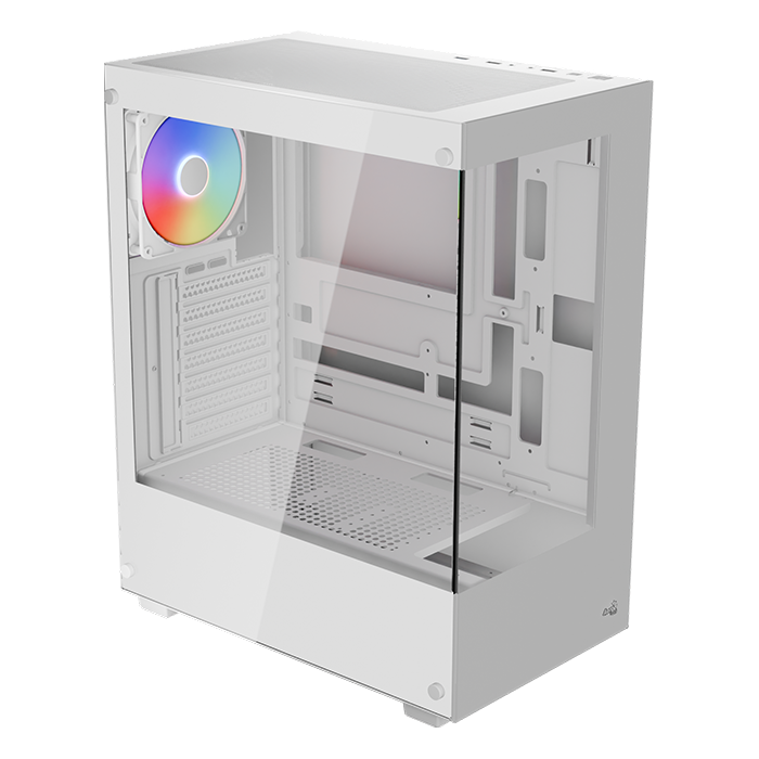 Pivot is a versatile mid tower PC case, compatible with ATX, Micro ATX, and mini-ITX motherboards, and a panoramic view designed for users who want an attractive and powerful build. It supports GPUs up to 345mm and CPU coolers up to 170mm, ensuring compatibility with high-end components. Additionally, the case offers options for both air and liquid cooling systems, with space for up to two 120mm or 140mm fans on top, a 120mm fan at the rear (included), and the possibility to install a 240mm radiator, catering to efficient thermal management in a sleek, white SPCC and steel design.