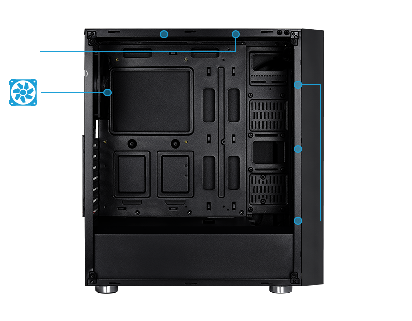 • Top Panel: 240mm Radiator (Optional)ADJUSTABLE REAR FAN