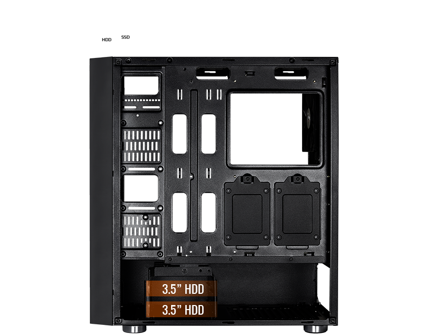 • Supports ATX, Micro-ATX, and Mini-ITX motherboards Supports up to 2 x 3.5” HDDs and 4 x 2.5” HDDs/SSDs. Supports up to 2 x 3.5” HDDs and 4 x 2.5” HDDs/SSDs. Removable PSU and top panel dust filters for convenient cleaning and maintenance.